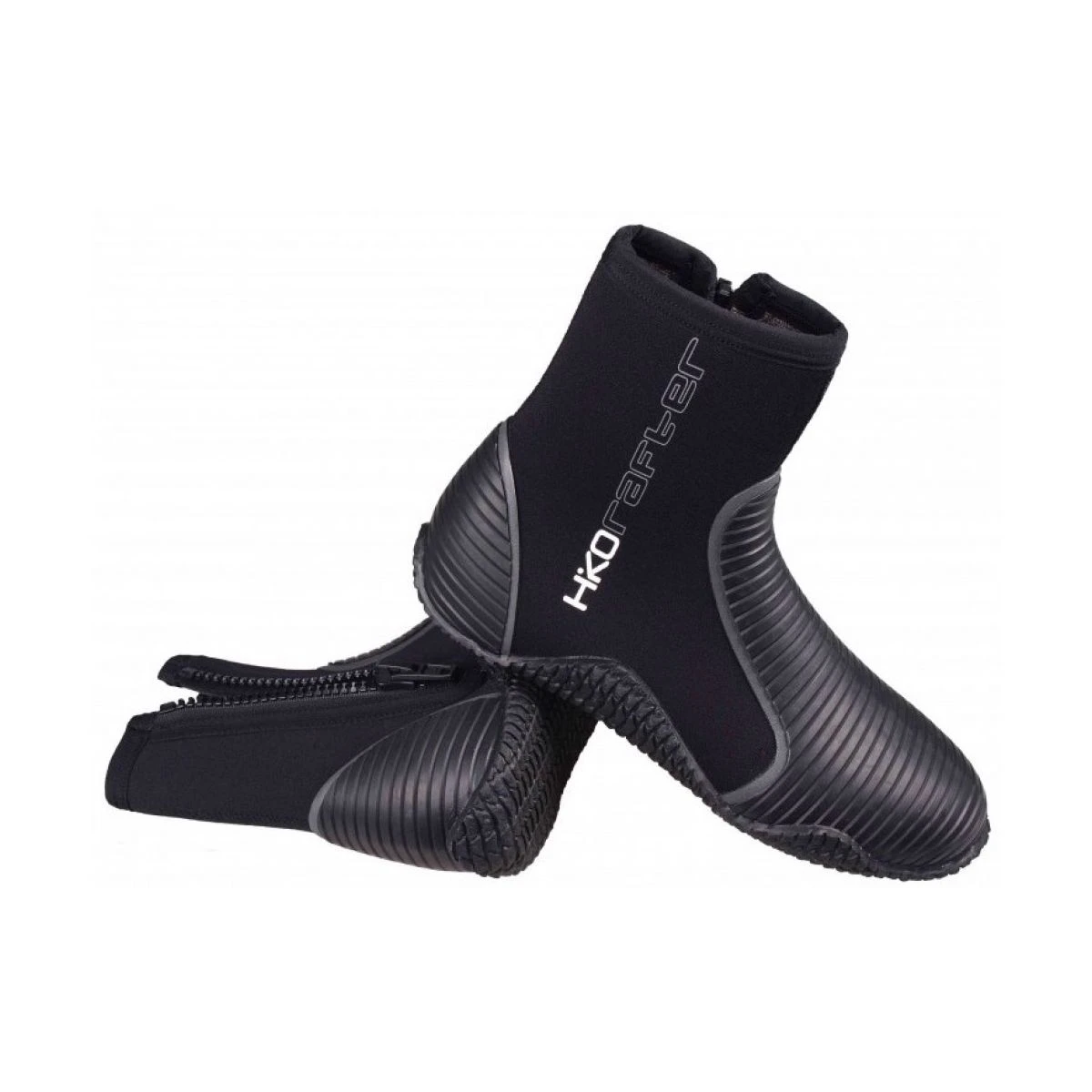 Bløde neoprenstøvler i 5 mm neopren med en riflet gummisål med ekstra forstærkning på hælen, som fordeler trykket, når du sidder i kajakken. Lynlås i siden gør støvlen let at tage af og på. Forstærkning på oversiden og vristen gør også støvlen velegnet til fodstropper f.eks. i surfski, ved jollesejlads, vindsurf og lignende. Støvlerne er gode i vinterhalvåret og på en kold forårs- eller efterårsdag. Du kan evt. bruge en tynd uldsok indeni støvlerne, hvilket gør dem endnu varmere. Om sommeren vil de lave sko normalt være behageligere temperaturmæssigt. Hvis du vil holde fødderne helt tørre f.eks. ved ind- og udstigning ved stranden, så skal du vælge de knæhøje støvler. De er helt vandtætte, mens du ikke kan forvente at Rafter støvlerne er helt tætte, hvis du står i vandet. Til gengæld holder de rigtig godt på varmen, selvom de er våde.